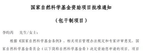 热烈祝贺本课题组博后李昀芮博士获评青年科学基金项目(C类)[原青年科学基金项目]发表时间:2025-09-07 14:55 近日,本课题组博后李昀芮博士申请的国家自然科学基金青年科学基金项目(C类)正式获得立项批准,资助经费为30万元人民币。